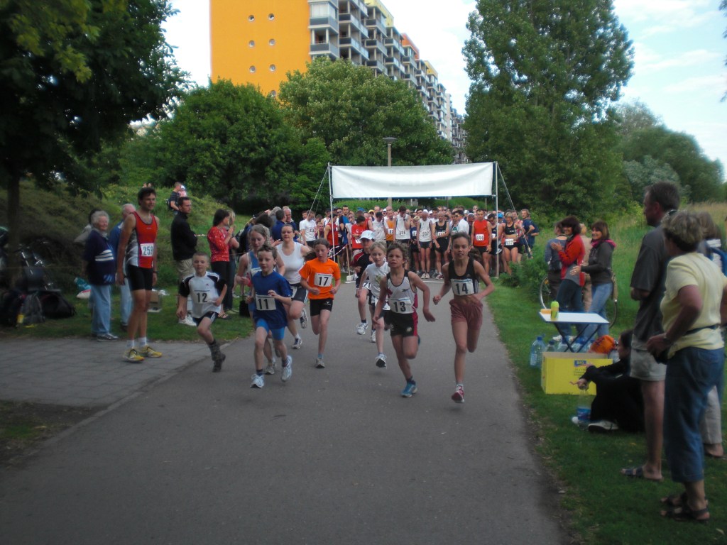 Es gab nun eine 10-km-Runde, die auch über die Lößniger Halde führte, die 1 oder 2 mal gelaufen wurde, sowie eine 5-km-Schleife und für die Bambinis 3 Sportplatzrunden.