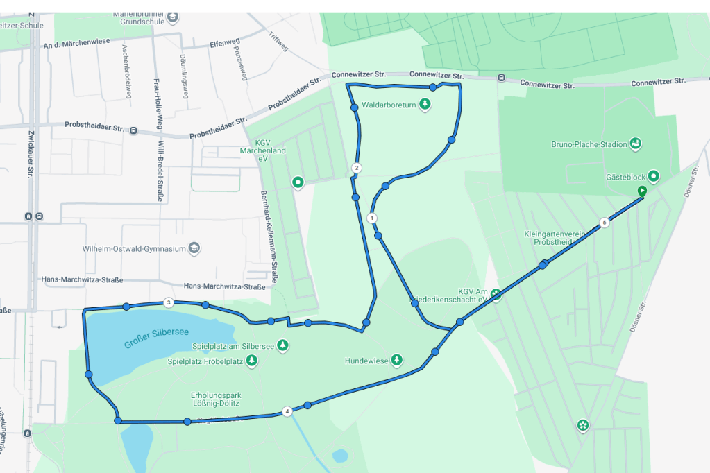 Diese Strecke wird beim 5-km-Lauf einmal entgegen dem Uhrzeigersinn durchlaufen.